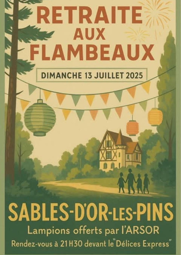 Avant le feu d’artifice : rendez vous devant ‘Délice Express’ allée des Acacias à 22h et distribution des lampions. Départ du défilé en musique à 22 :30h